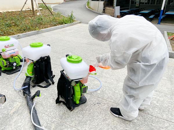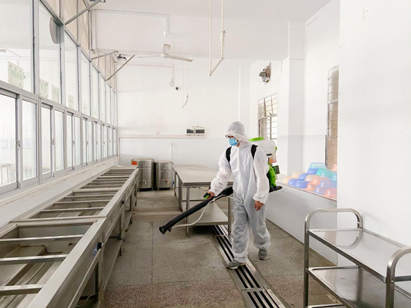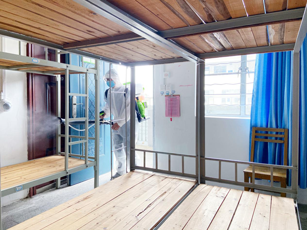 醫(yī)務(wù)人員對各宿舍進(jìn)行消毒