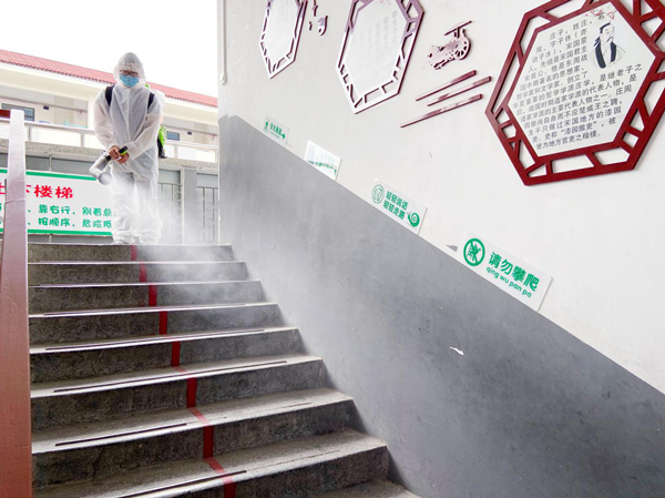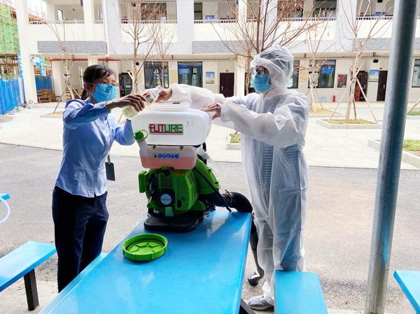 ??? 為筑牢疫情防控校園防線,打造真正安全、衛(wèi)生的校園環(huán)境,益眾托管濱江校區(qū)在百色協(xié)和醫(yī)院大力支持下,全面開展消毒防疫工作,對托管樓宿舍、廚房、食堂、樓道、衛(wèi)生間等區(qū)域進(jìn)行全面消毒,為師生構(gòu)筑安全屏障,以一個安全、衛(wèi)生的校區(qū)面貌靜候孩子們的歸來。(通訊員:黃桂珍)