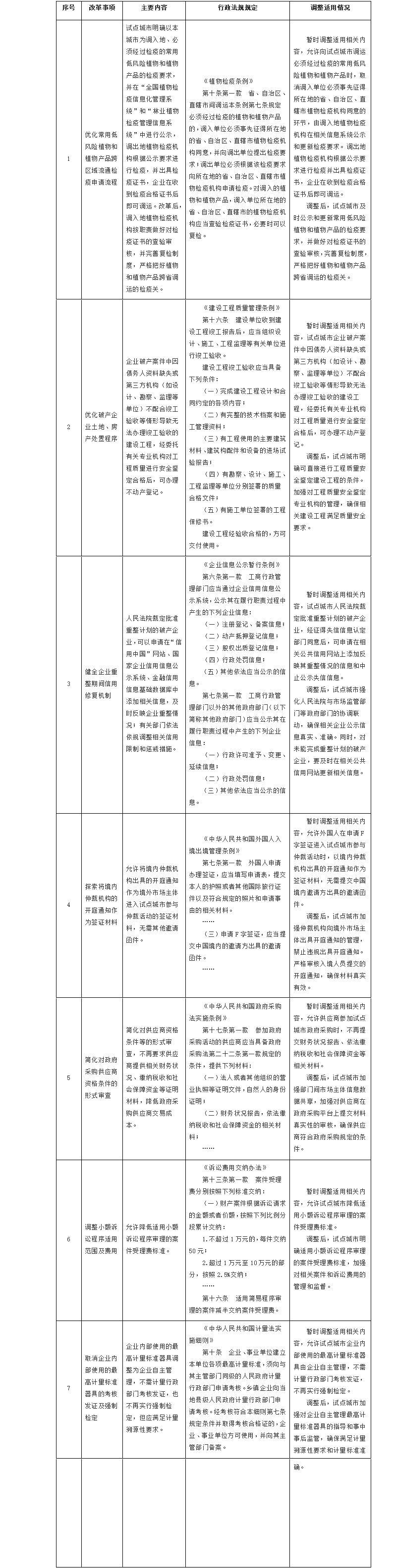 2.國(guó)務(wù)院決定在營(yíng)商環(huán)境創(chuàng)新試點(diǎn)城市暫時(shí)調(diào)整適用有關(guān)行政法規(guī)規(guī)定目錄