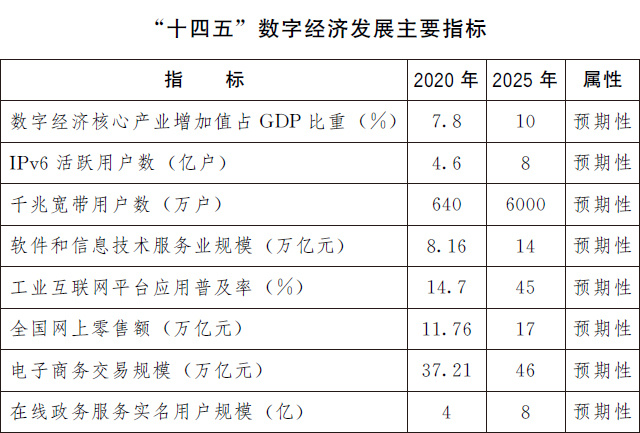 “十四五”數(shù)字經(jīng)濟(jì)發(fā)展規(guī)劃