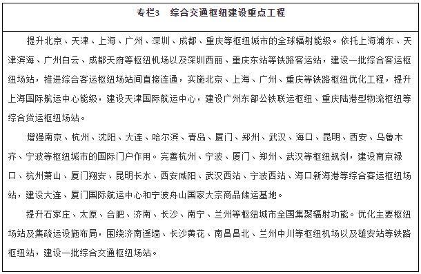 優(yōu)化綜合交通樞紐城市功能。提升國際性綜合交通樞紐的全球聯(lián)通水平和資源要素配置能力,增強(qiáng)部分樞紐國際門戶功能。優(yōu)化全國性綜合交通樞紐客貨中轉(zhuǎn)設(shè)施、集疏運網(wǎng)絡(luò)及客運場站間快速連接系統(tǒng)。增強(qiáng)區(qū)域性綜合交通樞紐的銜接轉(zhuǎn)運能力,發(fā)展口岸樞紐。強(qiáng)化不同層級綜合交通樞紐城市之間功能互補(bǔ)、設(shè)施連通、運行協(xié)同。