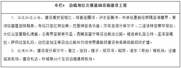 服務(wù)沿邊城鎮(zhèn)體系建設(shè),以公路、機(jī)場為重點,大力改善邊境地區(qū)交通出行條件,提升邊境城鎮(zhèn)人口集聚能力。統(tǒng)籌推進(jìn)邊境地區(qū)國省干線公路、農(nóng)村公路等建設(shè),全面完善國道干線主骨架,推進(jìn)沿邊公路并行線建設(shè)和低等級公路提質(zhì)改造,加快抵邊公路建設(shè),盡快形成層次清晰、結(jié)構(gòu)合理的沿邊公路網(wǎng)。穩(wěn)步推進(jìn)邊境地區(qū)機(jī)場建設(shè),構(gòu)建多層級航空網(wǎng),擴(kuò)大航空運輸服務(wù)覆蓋面。補(bǔ)強(qiáng)同江、二連浩特、阿拉山口、霍爾果斯、瑞麗、磨憨等口岸后方鐵路通道能力。加強(qiáng)抵邊自然村郵政設(shè)施建設(shè),實現(xiàn)郵政服務(wù)普遍覆蓋。